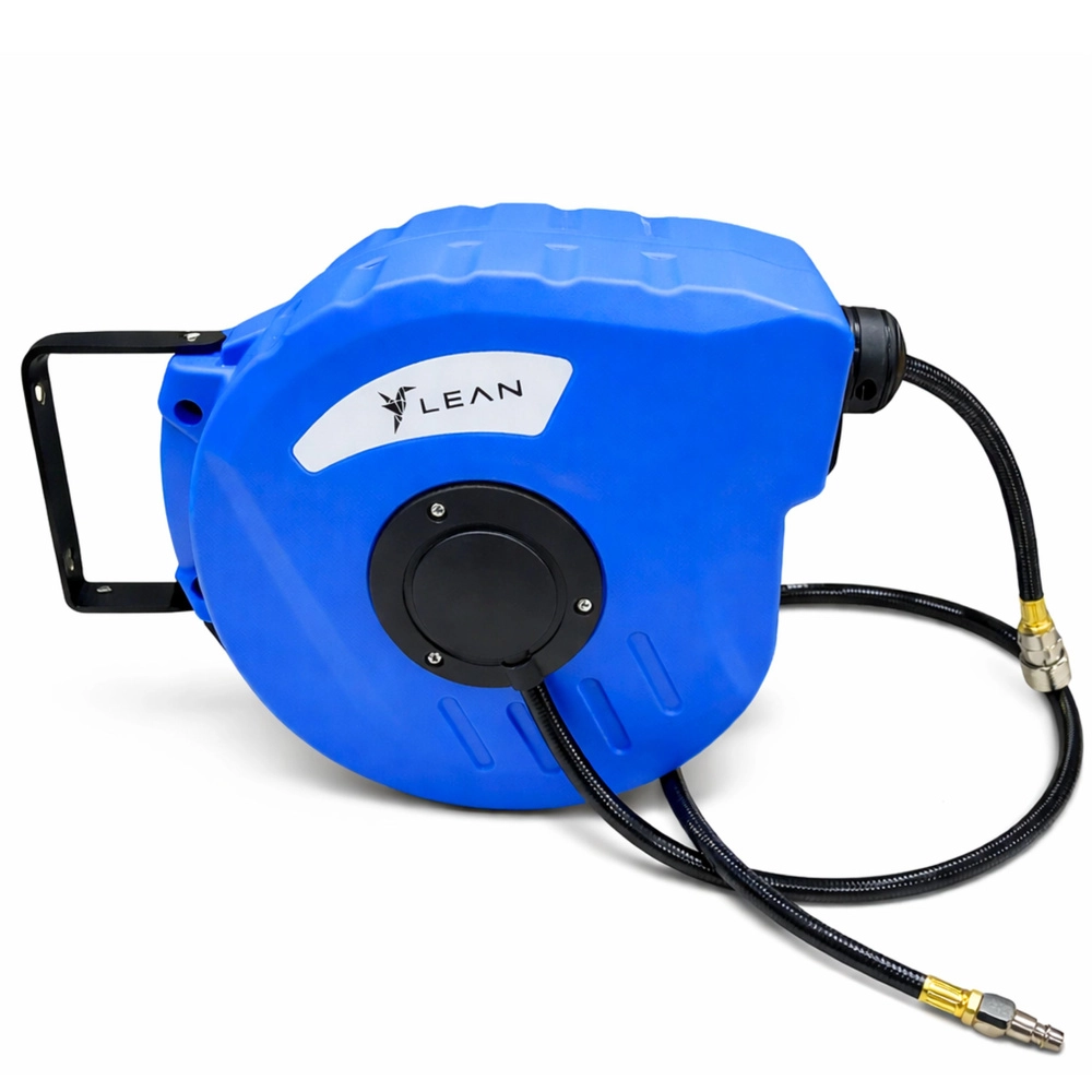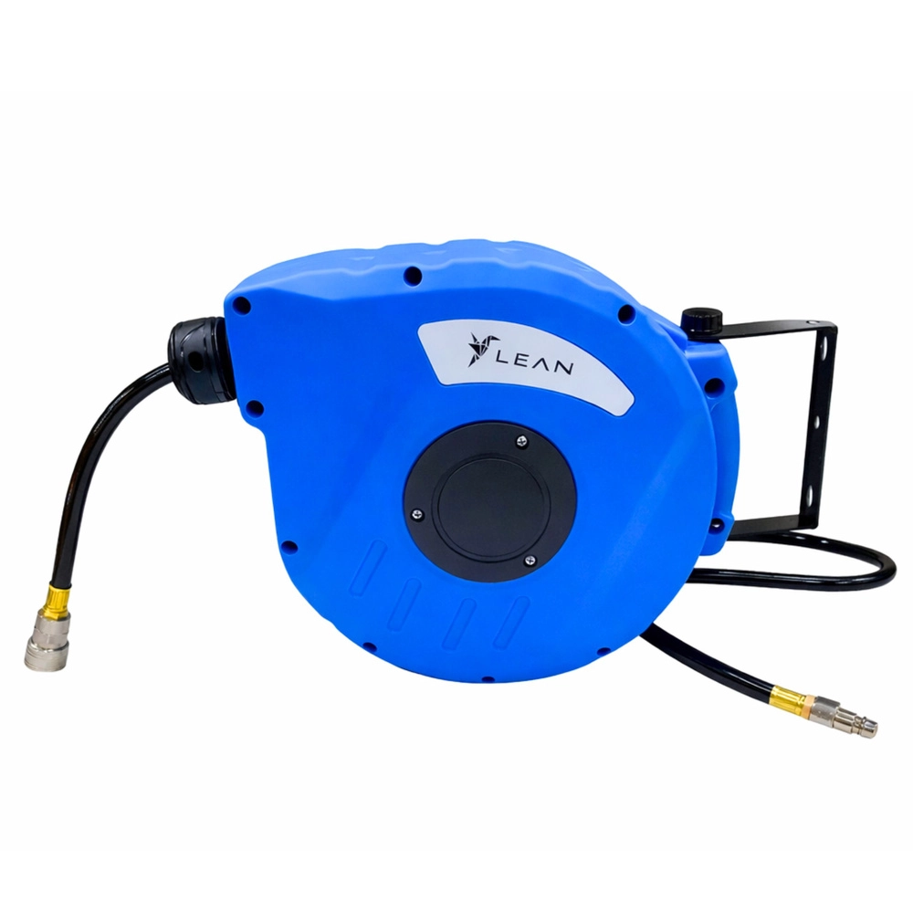 Praktičen navijalni boben s pnevmatično cevjo dolžine 10 m za delavnico in garažo. Zahvaljujoč samodejnemu navijanju ohranja red, fleksibilna PVC cev prenese obremenitve, hitre spojke 1/4" BSPT pa poskrbijo za hitro priključitev. Stenski nosilec za varno montažo in udobno delo.
