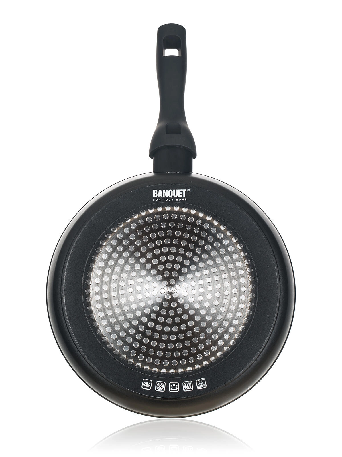 Zunanjo površino sestavlja 2-slojni toplotno odporen premaz v elegantni mat črni barvi. Indukcijsko nerjavno dno z laserskim potiskom je združljivo z vsemi vrstami kuhališč, vključno z indukcijo, in podpira učinkovito rabo energije.