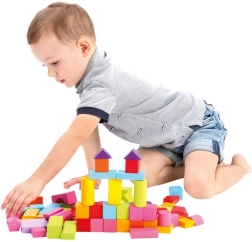 V vedru najdete 100 barvitih kock različnih oblik, ki bodo otroke zabavale dolge ure. Pokrov vedra služi kot vstavljiva igrača, ki bo vašemu otroku pomagala, da se uči prepoznavati različne oblike in izboljša fino motoriko.