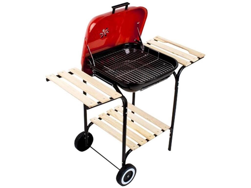 Kurišče z emajliranim premazom je odporno na vročino in se enostavno čisti, medtem ko pokrov v rdeči prašno lakirani barvi žaru doda stilski videz in zaščito pred vremenskimi vplivi. Lesene odlagalne police nudijo dovolj prostora za pripomočke in sestavine, žar pa boste zahvaljujoč kolesom za premikanje zlahka prestavili tja, kjer ga potrebujete.