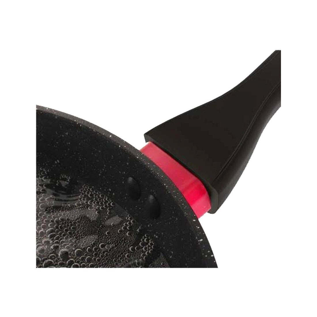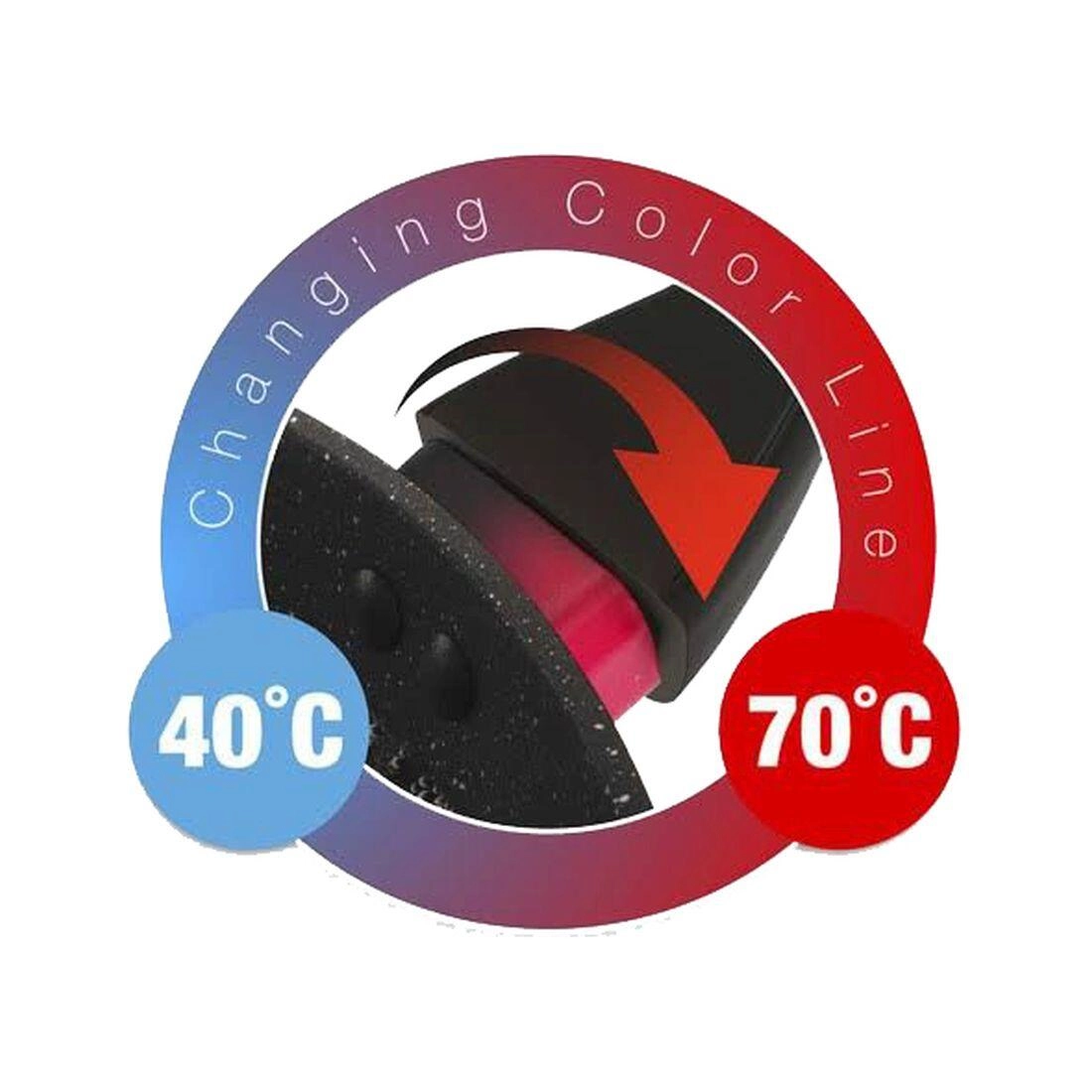 Edinstven temperaturni obroč nad ročajem se postopoma obarva iz črne v živo rdečo od 40 °C do 70 °C, zato vedno veste, kdaj je ponev pripravljena za polno kuhanje. V paketu najdete tudi zaščitno podlogo v rdeči barvi za varno shranjevanje brez prask.