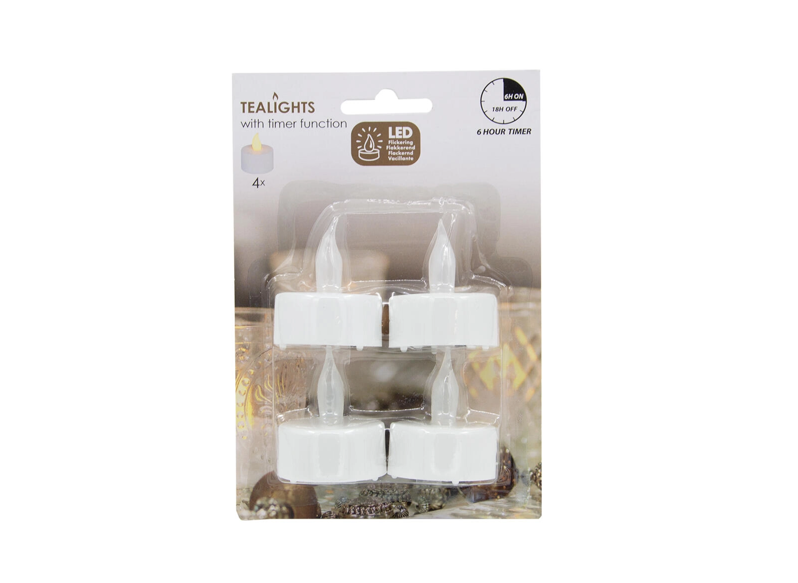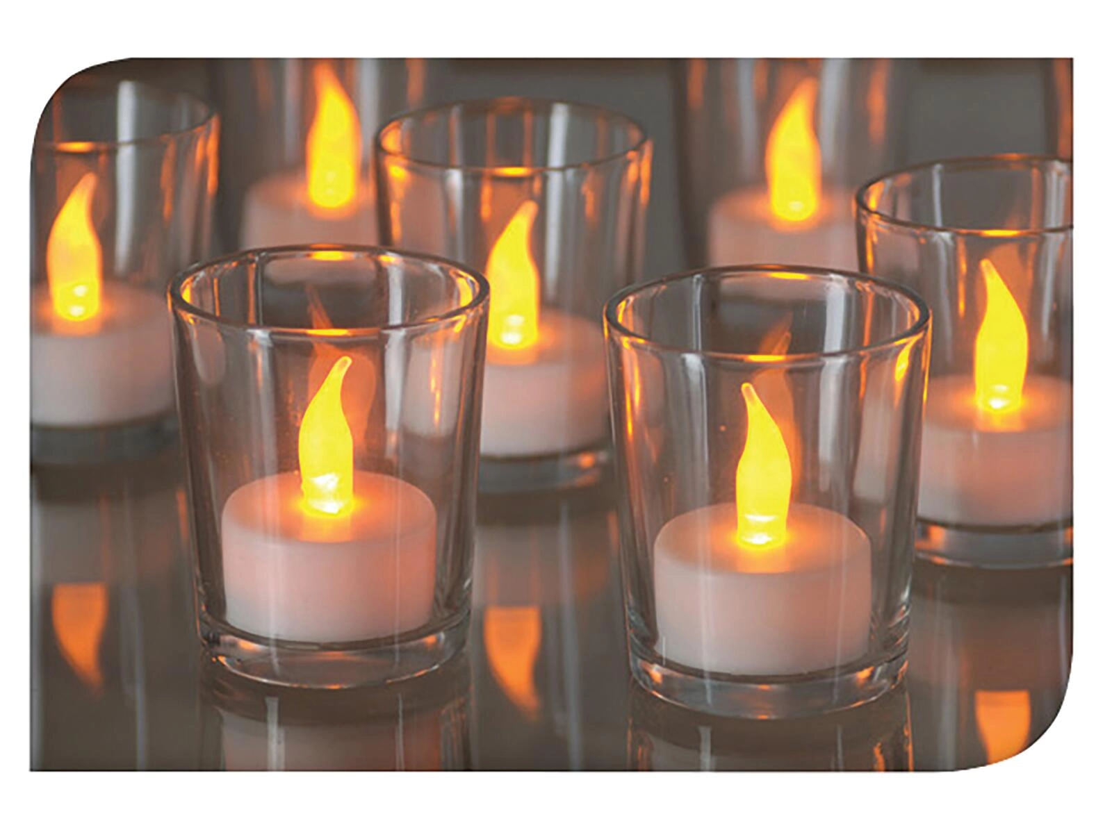 Ustvarite prijetno atmosfero s praktičnim kompletom LED čajnih svečk. Zahvaljujoč realističnemu utripanju posnemajo pravi plamen, hkrati pa so popolnoma varne – brez odprtega ognja, saj in kapljajočega voska. Del kompleta je tudi priročen časovnik, ki varčuje baterijo in vaše skrbi.