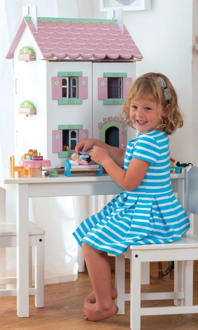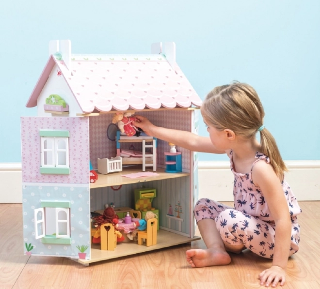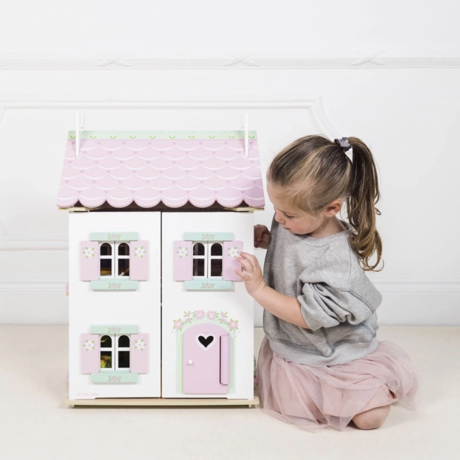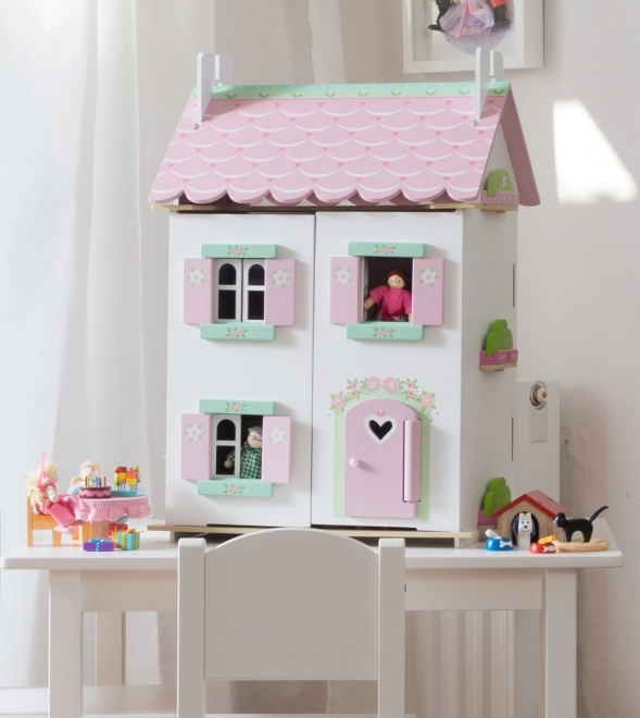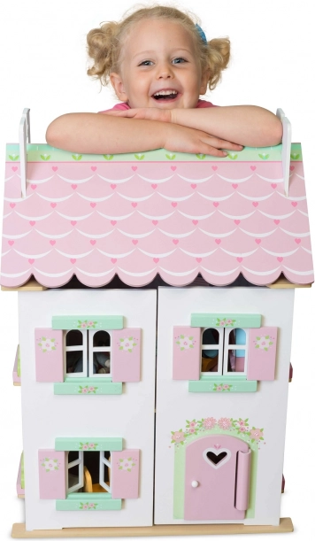 Čarobna lesena hiška za punčke Le Toy Van Sweetheart Cottage prinaša otrokom neskončne zgodbe. Ima odpirajočo se fasado in okna s polknami, odstranljiv del strehe z mansardo in je dobavljena z 37 kosi pohištva. Ročno dodelana v nežnih pastelnih barvah, izdelana iz trajnostnega lesa in prelakirana z netoksičnimi barvami za varno in realistično igro.