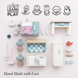 Razširite možnosti igre vaših otrok s tem čudovitim in podrobnim setom kuhinje iz kolekcije Daisylane. Ta set ne samo da obogati vašo hišico za punčke, ampak tudi navdihuje otroke k ustvarjalnosti in domišljijski igri. Vsak kos je izdelan s poudarkom na najmanjše podrobnosti, s čimer prispeva k realistični igri.