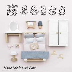 Le Toy Van prinaša set za spalnico, ki prinaša eleganco in udobje v vsako hiško za punčke. Igrivi sanjski svet otroške domišljije postane resničnost s tem setom.