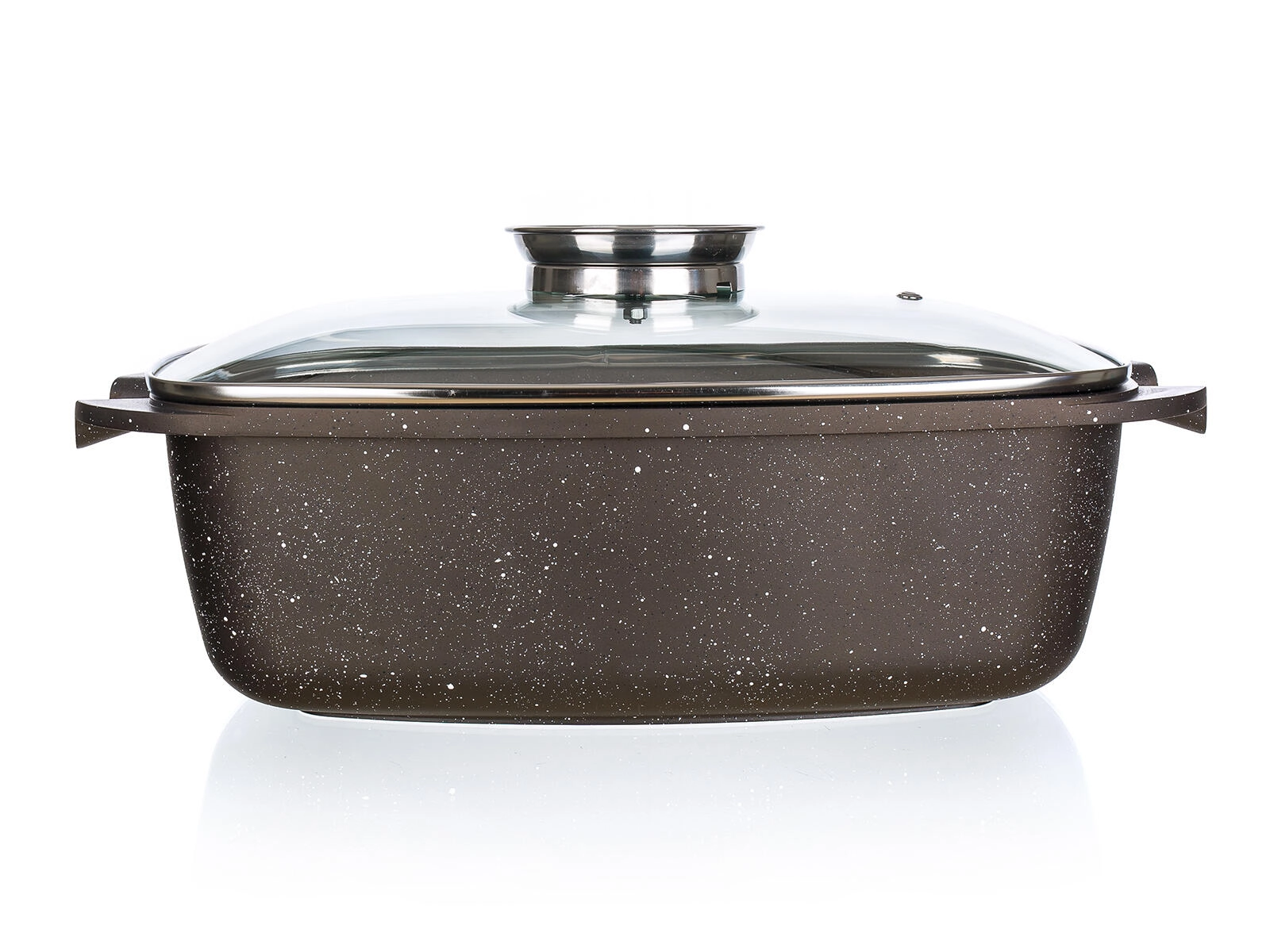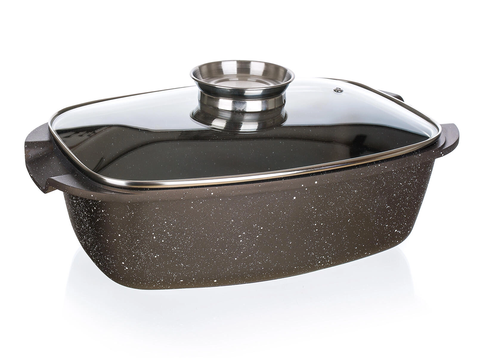 Ta vsestranski pekač PREMIUM Dark Brown je idealen za pečenje mesa, zelenjave in narastkov. Njegova trda neprijemljiva površina zmanjšuje prijemanje in olajša čiščenje, medtem ko debelo dno 4,7 mm in stene 2,2 mm zagotavljajo stabilnost in enakomerno prepečenost. Stekleni termo pokrov omogoča nadzor kuhanja brez nepotrebnega uhajanja toplote.