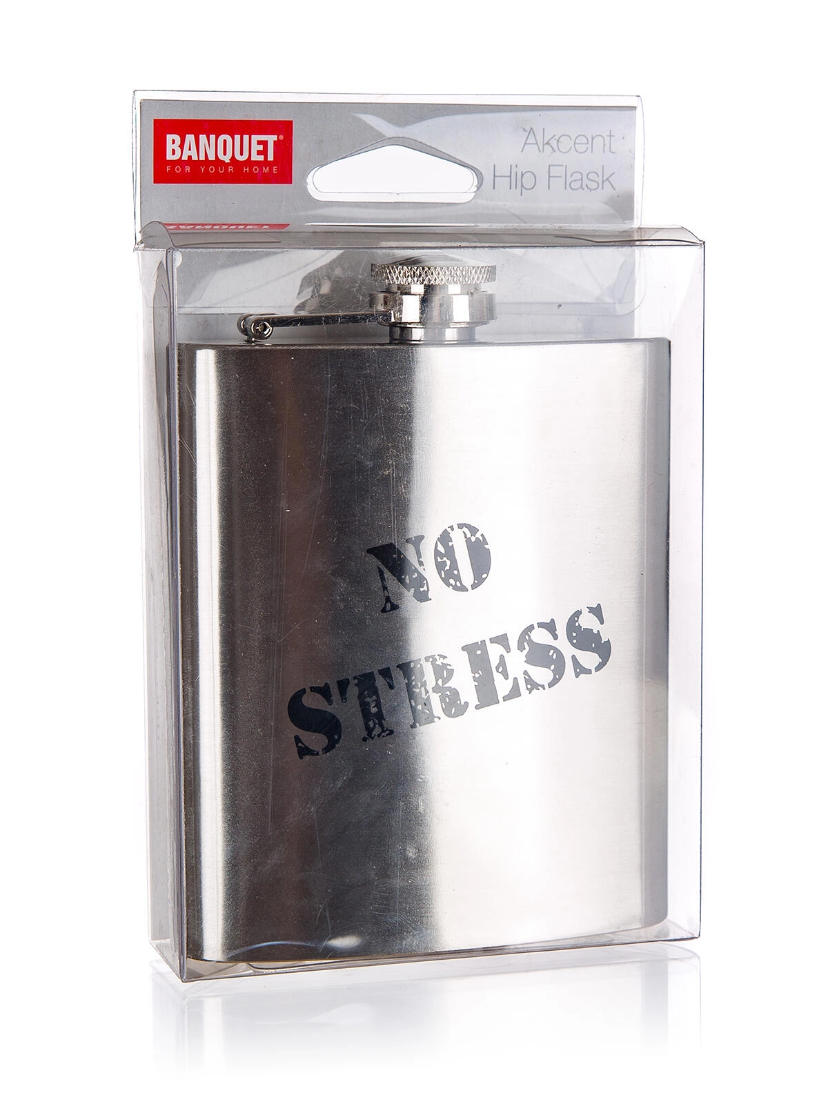 Stilna nerjavna čutara Akcent s potiskom »No Stress« je idealen spremljevalec na potovanja, izlete in za prosti čas. Zahvaljujoč kompaktnim meram in prostornini 200 ml boste priljubljeno pijačo zlahka pospravili v žep. Odporna nerjavna izvedba zagotavlja dolgo življenjsko dobo in enostavno vzdrževanje.