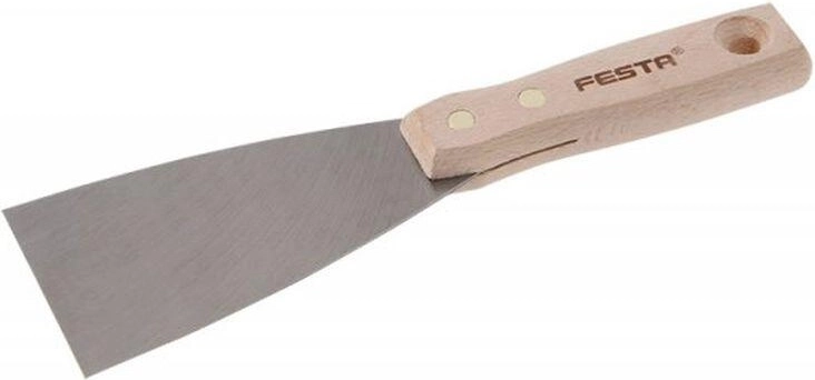 Jeklena lopatica FESTA 80 mm je zasnovana za natančno delo pri prenovah in obdelavi površin. Odporno jekleno rezilo zagotavlja dolgo življenjsko dobo in učinkovito odstranjevanje starih premazov, kitov ali nečistoč, medtem ko ergonomski leseni ročaj nudi zanesljiv oprijem in udobje tudi pri daljši uporabi.