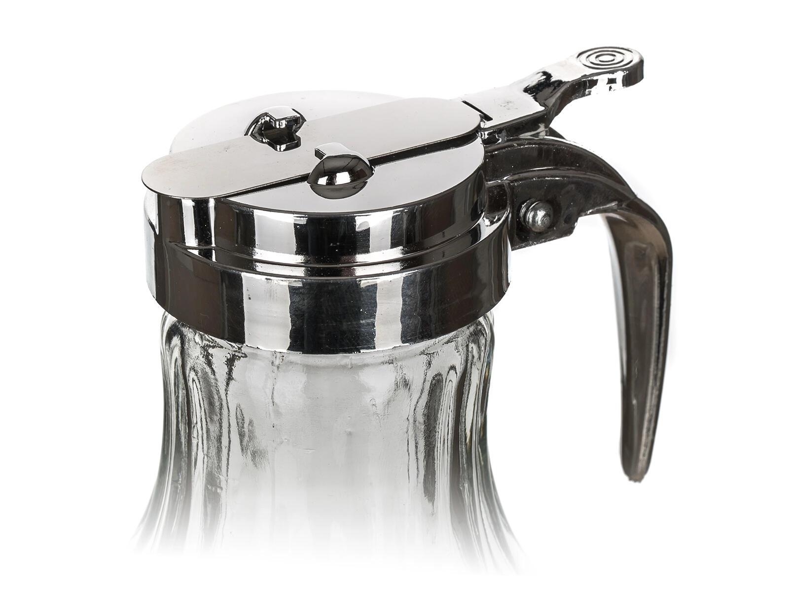 Pokrov na tečaju z vzvodom omogoča nadzorovan pretok brez kapljanja – idealno za med, smetano in sirupe.