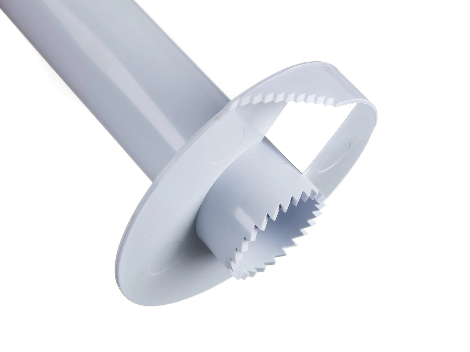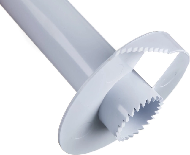 Zaradi ergonomskega T-ročaja in ostrega nazobčanega roba je delo tekoče in varno. Trpežna plastična zasnova se preprosto vzdržuje in po uporabi jo le vstavite v pomivalni stroj.