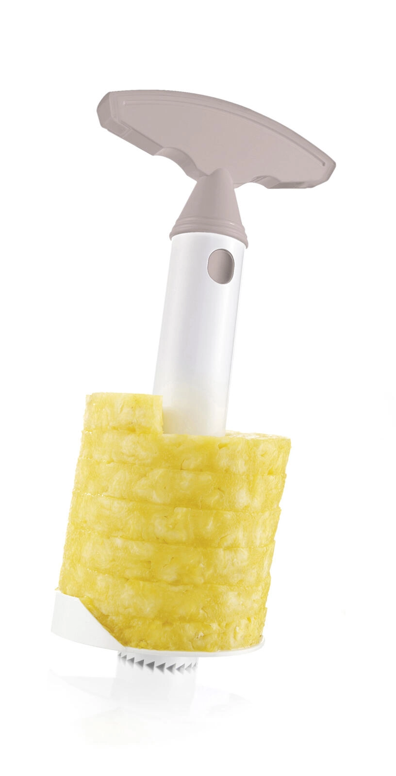 Poenostavite pripravo svežega ananasa s praktičnim orodjem Culinaria Latte, ki v hipu ustvari enakomerne spiralne rezine, odstrani trdo sredico in ohrani čisto lupino za preprosto serviranje. Ergonomski ročaj zagotavlja udobno vrtenje, trpežna plastika pa je primerna za pomivanje v pomivalnem stroju.