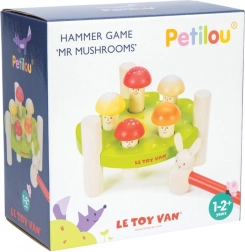 Igrača razvija motorične spretnosti, saj otroci uporabljajo kladivce za zabijanje mušic. Barvite zasnove in oblike spodbujajo vizualno zaznavanje.