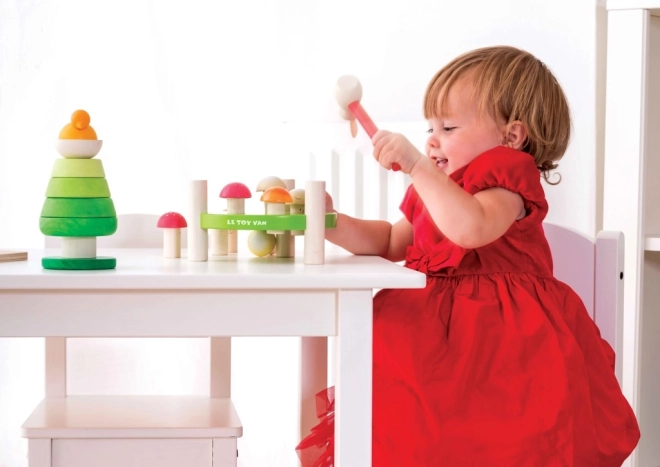 Ta lepo oblikovana lesena zabijalna igrača prinaša veselje in učenje v otroške igre. Zagotavlja ure zabave, med katerimi otroci vadijo svoje spretnosti: