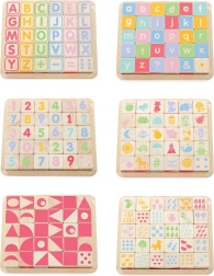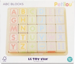 Set LE TOY VAN Petilou je idealna izobraževalna igrača za otroke od 12 mesecev. Vsaka kocka je edinstvena, ročno potiskana s sitotiskom in na različnih straneh ponuja črke, številke, oblike, živalice in simbole. Zahvaljujoč robustnemu gumijevemu lesu in barvam na vodni osnovi so kocke trpežne, varne in prijetne na dotik.