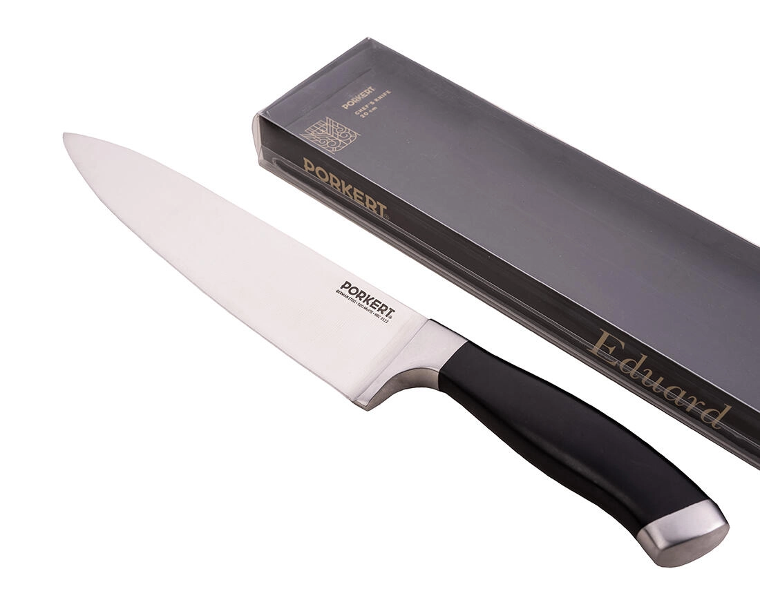 Kuhinjski nož EDUARD 20 cm je osnovno orodje za vsakogar, ki želi v kuhinji delati hitro, natančno in varno. Uravnotežena zasnova, univerzalna oblika rezila in kakovostni materiali zagotavljajo gladko rezanje zelenjave, mesa in zelišč.