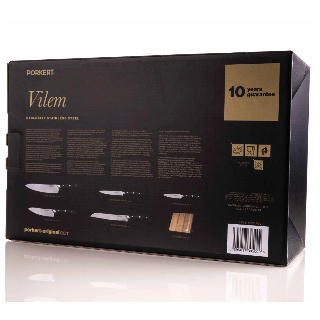 Set kuhinjskih nožev Vilem 5 kosov z magnetnim bambusovim blokom