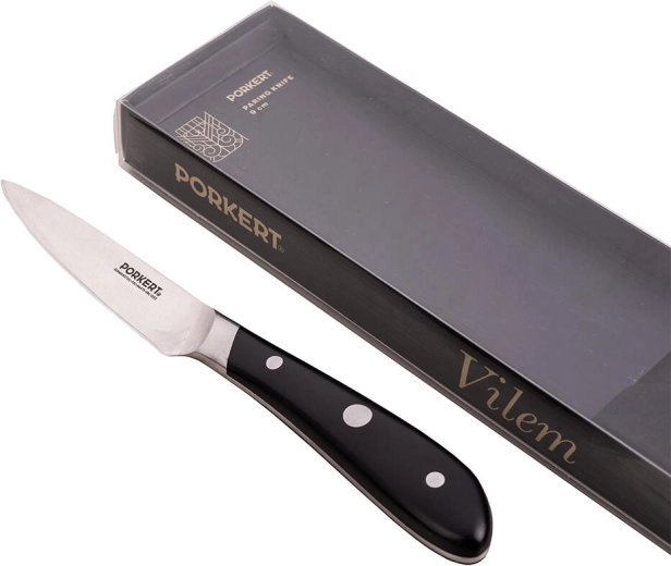 Izrezovalni nož Vilem je idealen pomočnik za vsakodnevno delo v kuhinji. Kratko rezilo dolžine 9 cm iz jekla X50CrMoV15 (ISO 1.4116) ponuja odlično razmerje med ostrino in trpežnostjo, zato zlahka obvlada rezanje, čiščenje in dekoriranje sadja ter zelenjave.