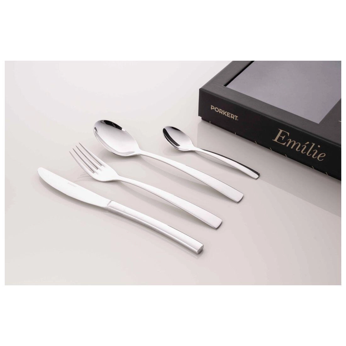 Privoščite si harmonijo za mizo s priborom EMILIE. Minimalistična eleganca izpostavi vaše jedi, medtem ko prijetna ergonomija in uravnoteženost zagotavljata udobno uporabo pri vsakem hodu. Set je idealen za družinske večerje in slavnostne priložnosti.