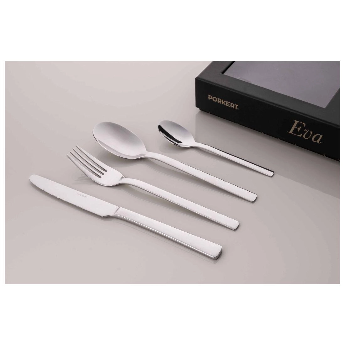 Vrnite se k preprosti eleganci s setom pribora Eva. Brezčasne oblike, čiste linije in natančna izdelava zagotavljajo, da bo ta set postal naravni del vašega pogrinjka. Visokokakovostno nerjavno jeklo omogoča dolgo življenjsko dobo in enostavno vzdrževanje.
