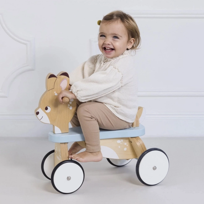 Leseni poganjalec Srnica ponuja robustno konstrukcijo iz trajnostnega lesa, ki zagotavlja stabilno vožnjo in varnost za male voznike.