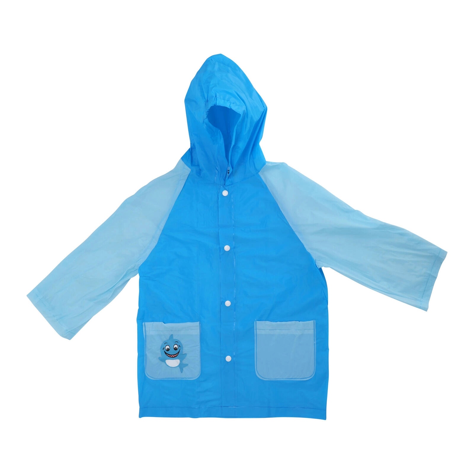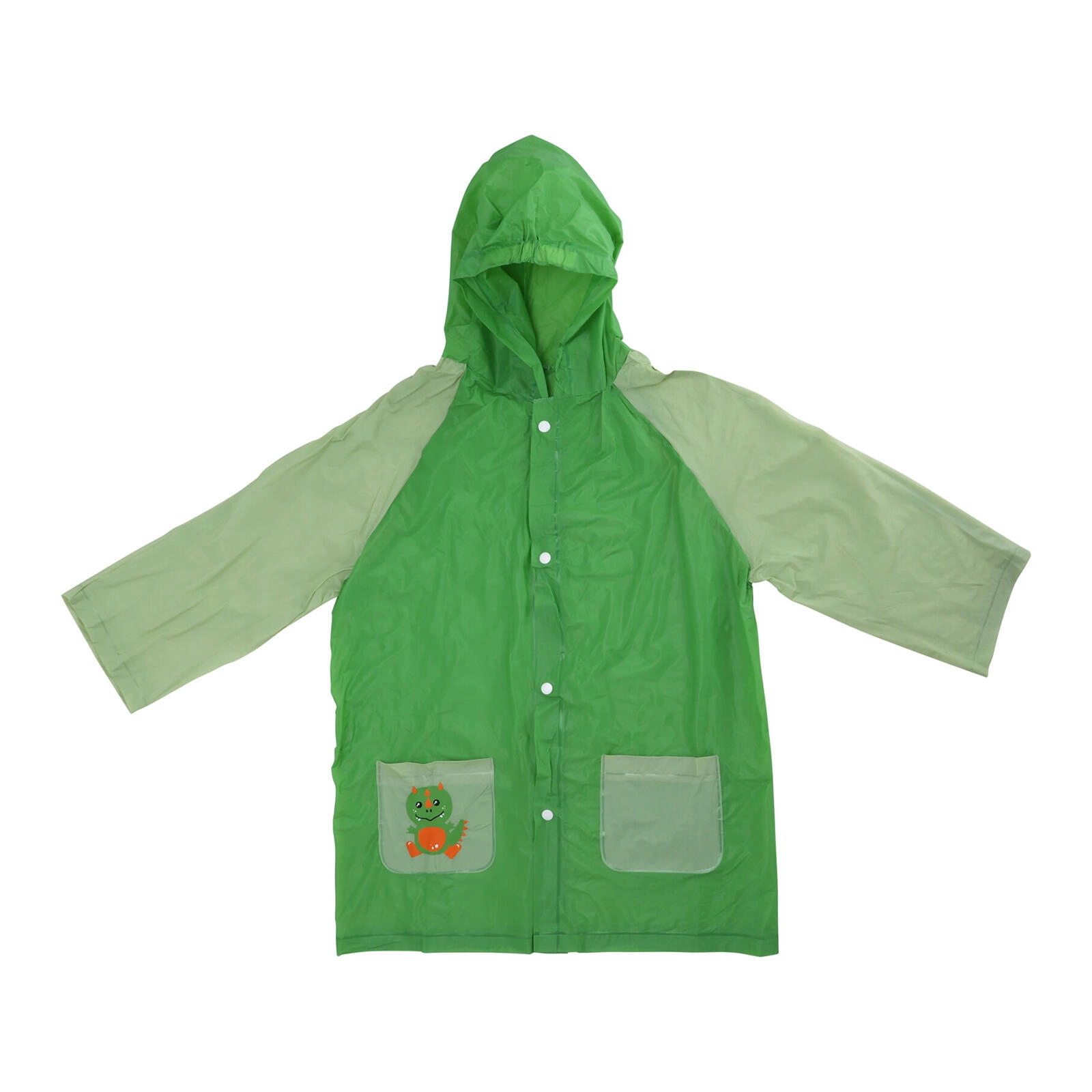 Zanesljiv PVC in kapuca ohranjata otroke suhe tudi v močnem dežju. Gumbi po celotni dolžini olajšajo oblačenje.
