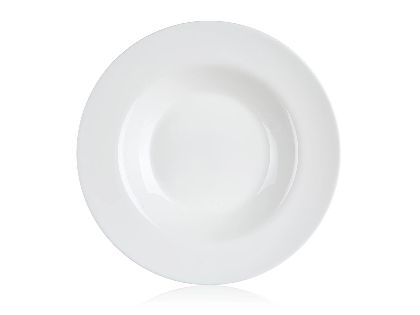 Čisto bel videz in širok rob dodata serviranju eleganten pridih ter se podata k vsakemu setu posode.