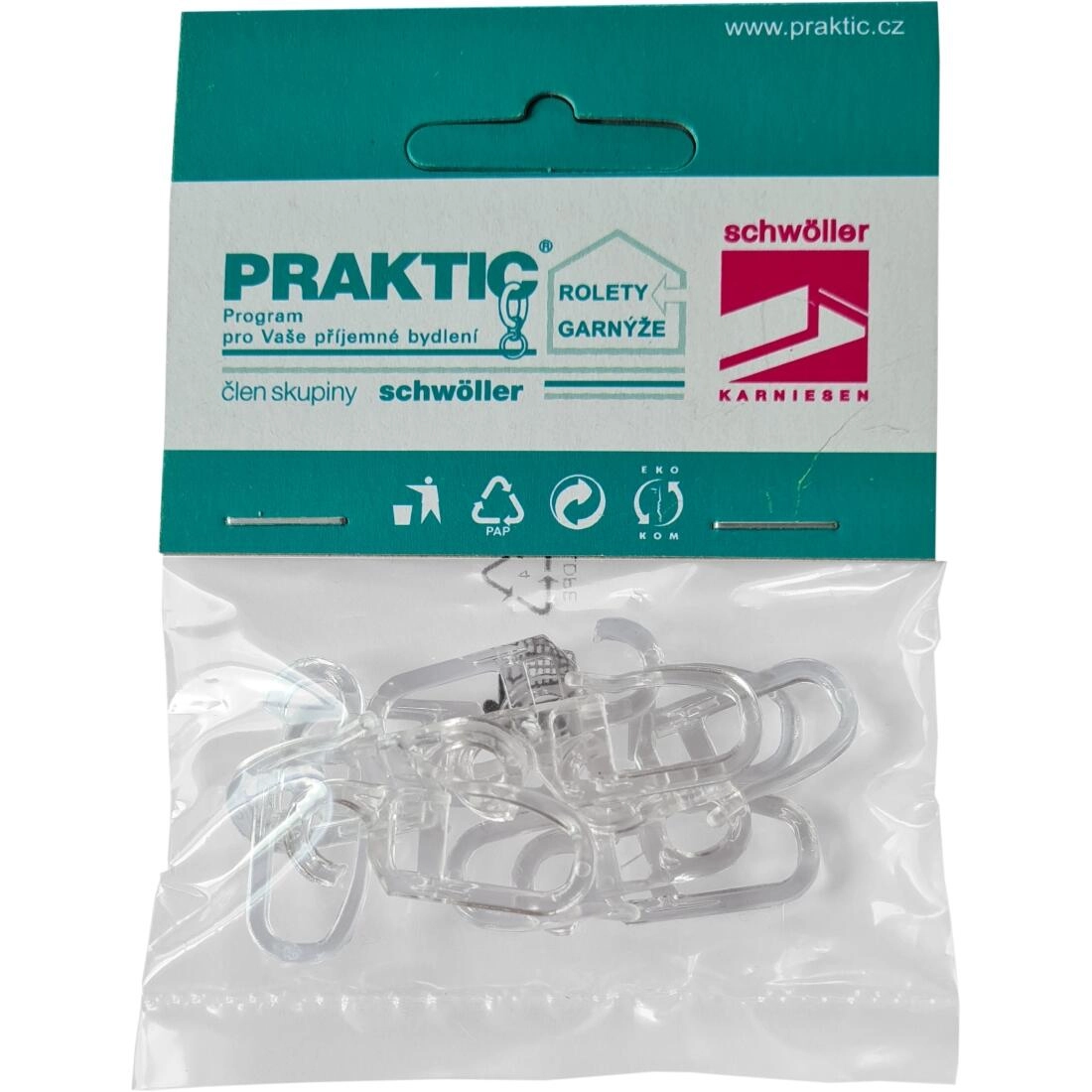 Praktični zavesni kavlji iz trpežne plastike v prozorni izvedbi za diskretno in zanesljivo pritrjevanje zaves. Idealni za običajno uporabo v gospodinjstvu in pisarni. Enostavna montaža, dolga življenjska doba in univerzalna uporaba v enem pakiranju po 10 kosov. Prozorna izvedba se poda vsem vrstam zaves, trpežna plastika zagotavlja čvrstost, preprosta namestitev pa prihrani čas.