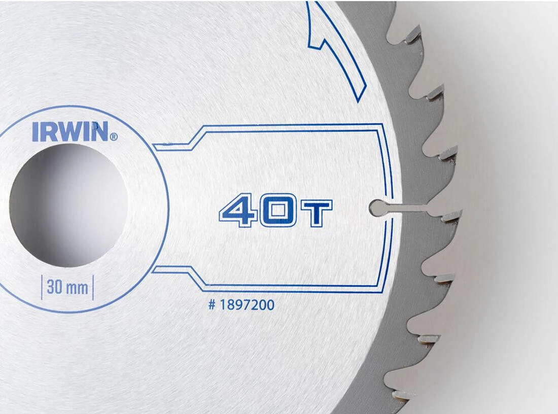 Univerzalni žagin list IRWIN s premerom 190 mm, s 40 zobmi in tanim rezom 2,5 mm, je idealen za čiste in hitre reze v les, iverne plošče in vezane plošče. ATB izmenično brušenje zagotavlja gladko površino, karbidni zobje ostanejo dlje ostri, dilatacijske in hladilne odprtine pa zmanjšujejo segrevanje in zvijanje lista.