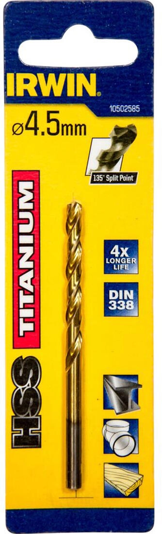 Profesionalni sveder za kovino IRWIN s prevleko iz titanovega nitrida (TiN) za hitro, čisto in natančno vrtanje. Ostra konica 135° za enostavno centriranje, višja odpornost proti toploti in trenju ter do 6× daljša življenjska doba v primerjavi z običajnimi HSS svedri.