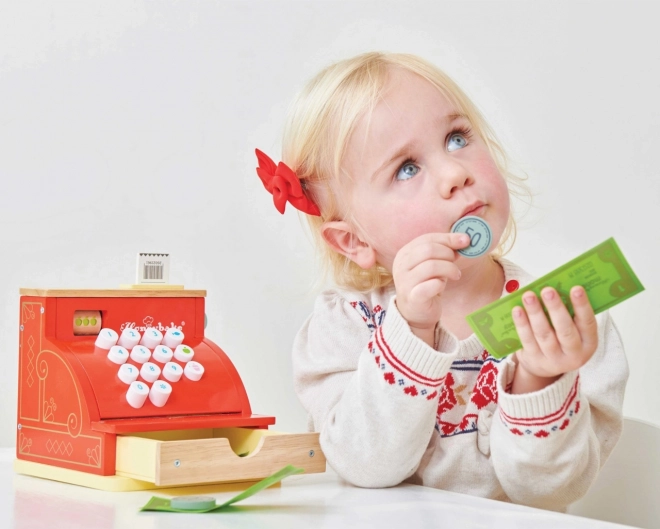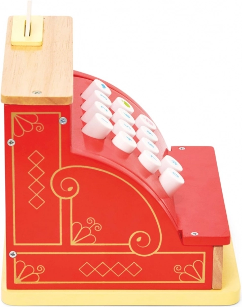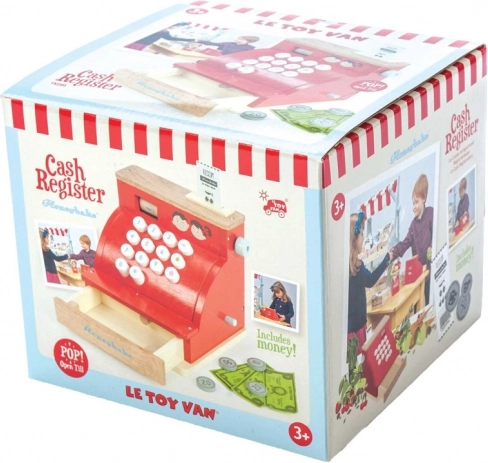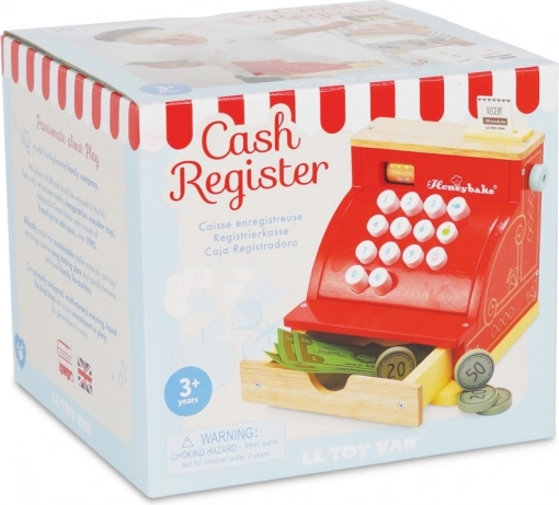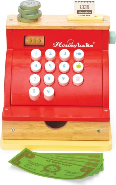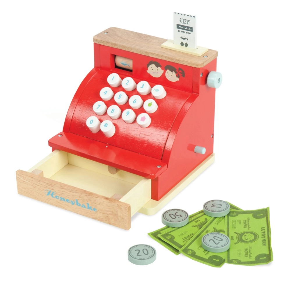 Rdeča lesena blagajna LE TOY VAN iz večkrat nagrajene kolekcije Honeybake združuje kakovostno izdelavo, varne materiale in očarljiv vintage videz z zlatimi detajli. Je idealna za igro trgovinice ter razvoj socialnih veščin, ustvarjalnosti in osnovnih matematičnih znanj.