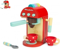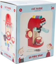 Vstavljajte lesene kapsule v ročico, »spuščajte« kavo v skodelico in se igrajte prave bariste. Interaktivni elementi spodbujajo domišljijo in fino motoriko.