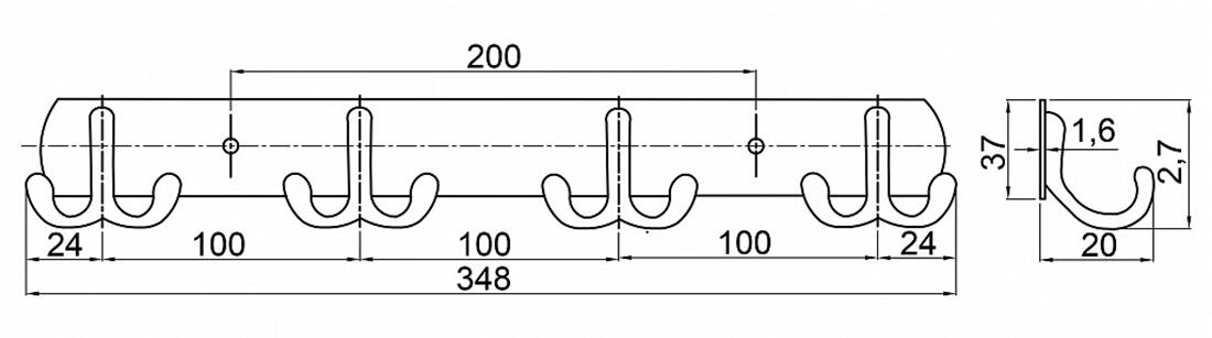 - Stenski obešalnik s štirimi dvojnimi kavlji