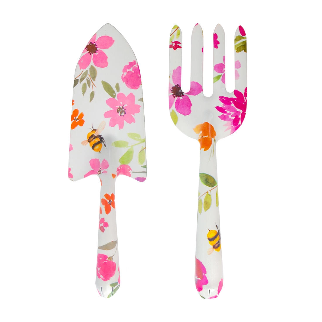 Ta stilski 2-delni vrtni komplet združuje praktičnost in estetiko. Bela površina z rožnatimi cvetovi doda šarm vsaki vrtni in notranji zeleni oazi. Orodje je lahko, a kljub temu trpežno zaradi železnega materiala, ter olajša presajanje, rahljanje in nežno nego cvetlic.