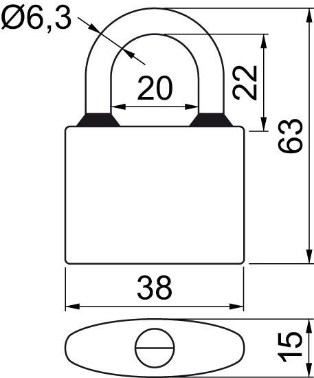Viseče ključavnice OVAL 38 – komplet 3 kosov na skupni zaklep