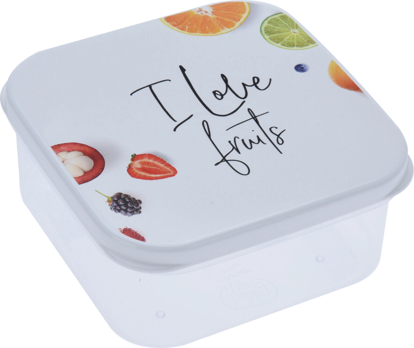 Ohranite red v kuhinji in na poti z lahkimi in trpežnimi posodami s potiskom. Štiri velikosti pokrijejo prigrizke, sadje, ostanke obrokov in manjše sestavine. Prosojna telesa in bel pokrov z dekorativnim potiskom omogočata hitro orientacijo po vsebini.