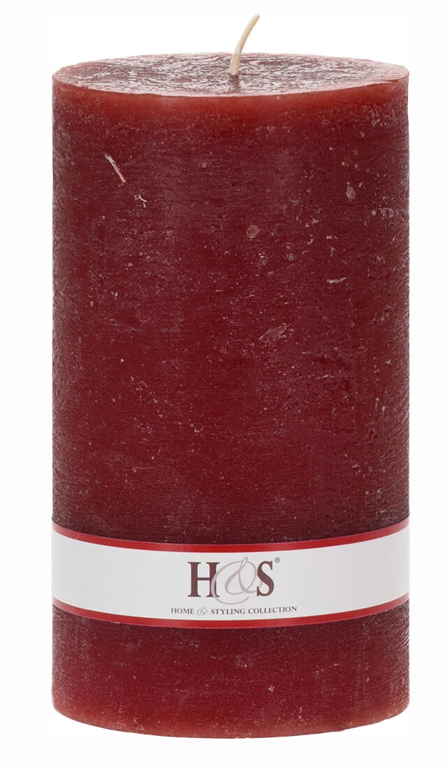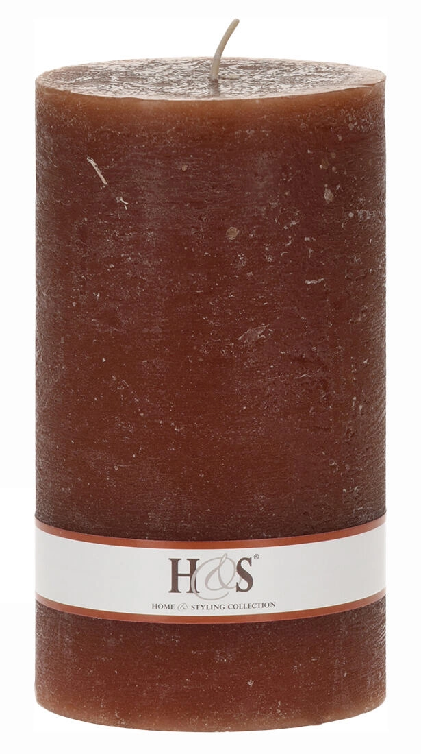 Mere 9 × 15 cm zagotavljajo stabilnost in daljše gorenje, medtem ko en sam stenj podpira enakomerno taljenje voska. Sveča je na voljo v številnih priljubljenih barvah – rdeča, zelena, bela, temno rjava, svetlo rjava in bež – zato jo zlahka uskladite z letnim časom in dekoracijo.