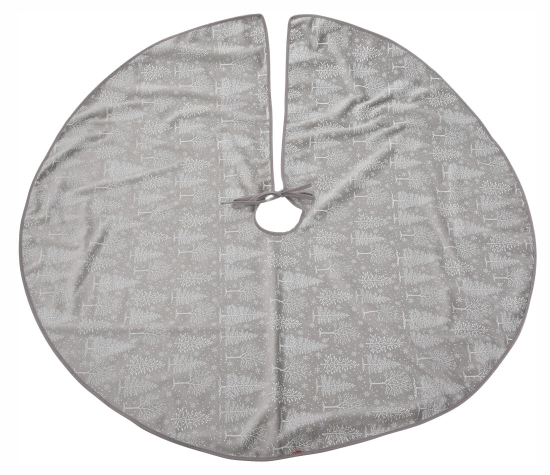 Ustvarite popoln praznični kotiček ob božičnem drevesu. Okroglo tekstilno krilo s premerom 95 cm v sivih tonih diskretno skrije stojalo, poenoti videz dekoracij in doda interierju toplino. Zahvaljujoč praktičnemu kroju z rezom in zavezovanjem se zlahka namesti okoli debla.