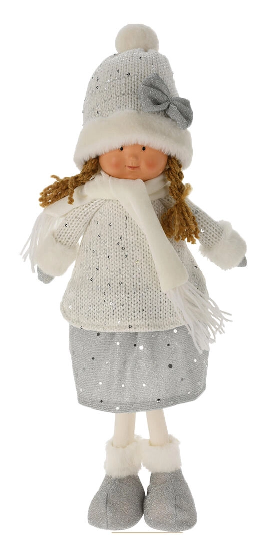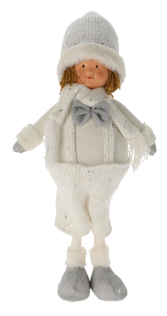 Ta stoječa figurica v zimskem outfitu razveseli otroke in odrasle. Odlično se ujema z modernimi interierji in zaradi nežnih detajlov – pletene kape s cofom, šala in mehkih čeveljčkov – deluje toplo in slovesno. Lahka, a stabilna dekoracija, ki jo preprosto postavite na katerokoli ravno površino.