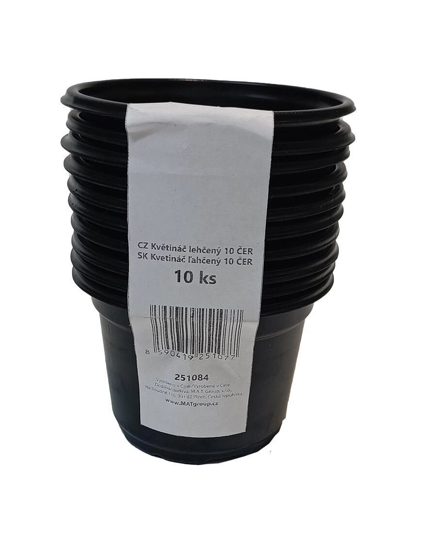 Praktičen komplet 10 lahkih lončkov za rože s premerom 9,5 cm v črni barvi je idealen za presajanje sadik iz setov za predgojenje. Lahek in trpežen material PS olajša rokovanje, kompaktne mere pa prihranijo prostor in podpirajo utrjevanje rastlin pred sajenjem.
