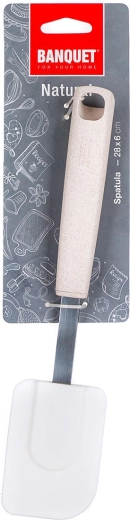 Lopatica NATURAL je zanesljiv pomočnik za peko in kuhanje. Prožni silikonski del odlično postrga sklede in enakomerno razmaže kreme, medtem ko čvrsto nerjavno telo zagotavlja vzdržljivost in stabilnost pri delu. Zahvaljujoč ušescu jo lahko enostavno obesite, da je vedno pri roki.