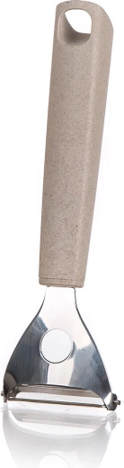 Praktičen kuhinjski lupilec z vodoravnim rezilom za hitro čiščenje zelenjave in sadja. Odporna zasnova iz nerjavnega jekla, udoben ergonomski ročaj iz polipropilena z dodatkom pšeničnih otrobov ter zanka za obešanje za enostavno shranjevanje. Primeren za korenje, kumare, hren in drugo podolgovato zelenjavo in sadje.