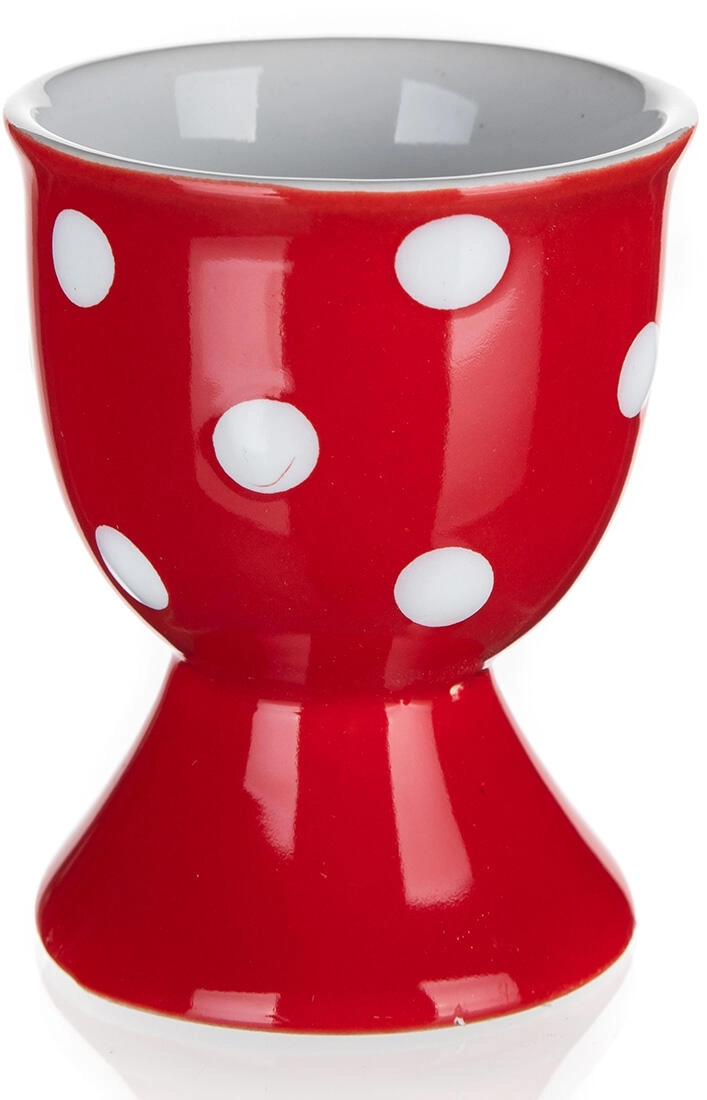 Stilski lonček za jajce višine 7 cm v rdeči barvi z belimi pikami doda vašemu pogrinjku igriv pridih. Izdelan je iz kakovostne keramike, ki je odporna, enostavna za čiščenje in jajce zanesljivo drži na mestu.
