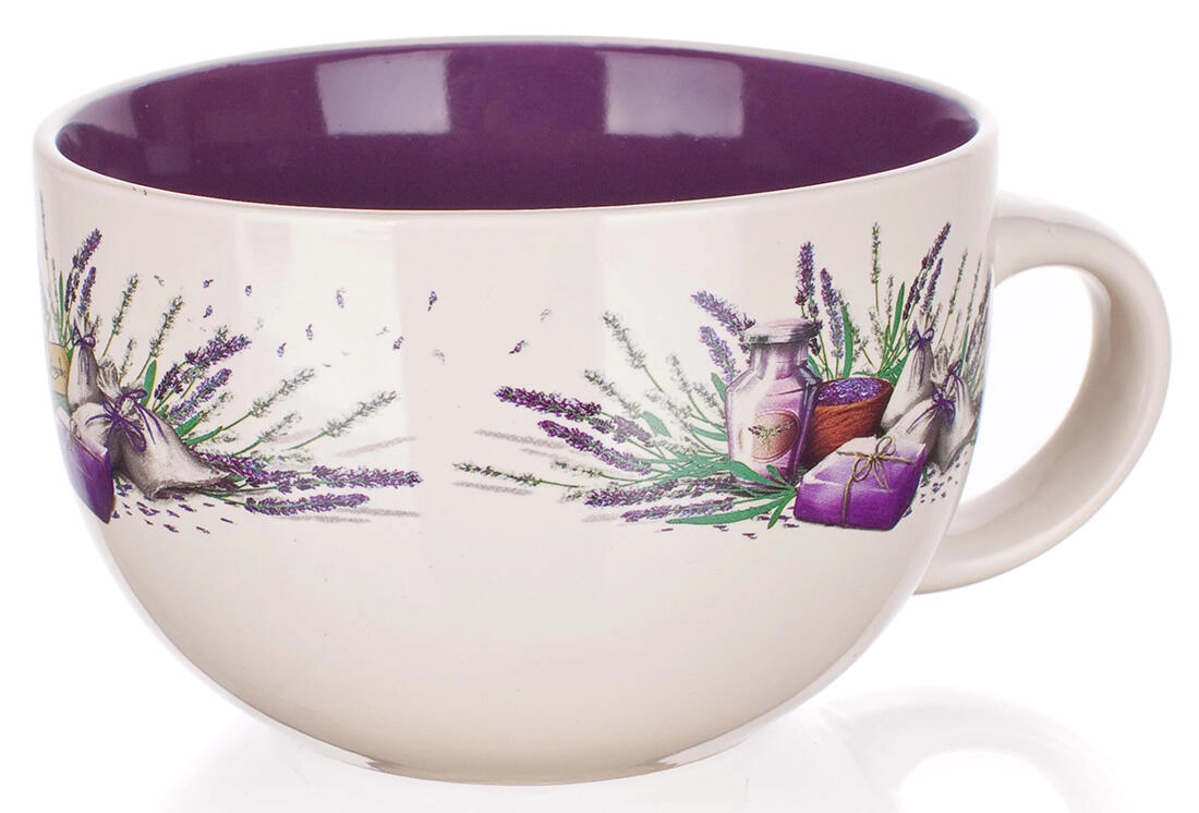 Uživajte v najljubši pijači v velikem slogu. Keramična jumbo skodelica Lavender z nežnim dekorjem sivke je odlična izbira za ljubitelje čaja, kave in kakava. Zaradi velike prostornine 660 ml je idealna za dolga jutra in sproščene večere.
