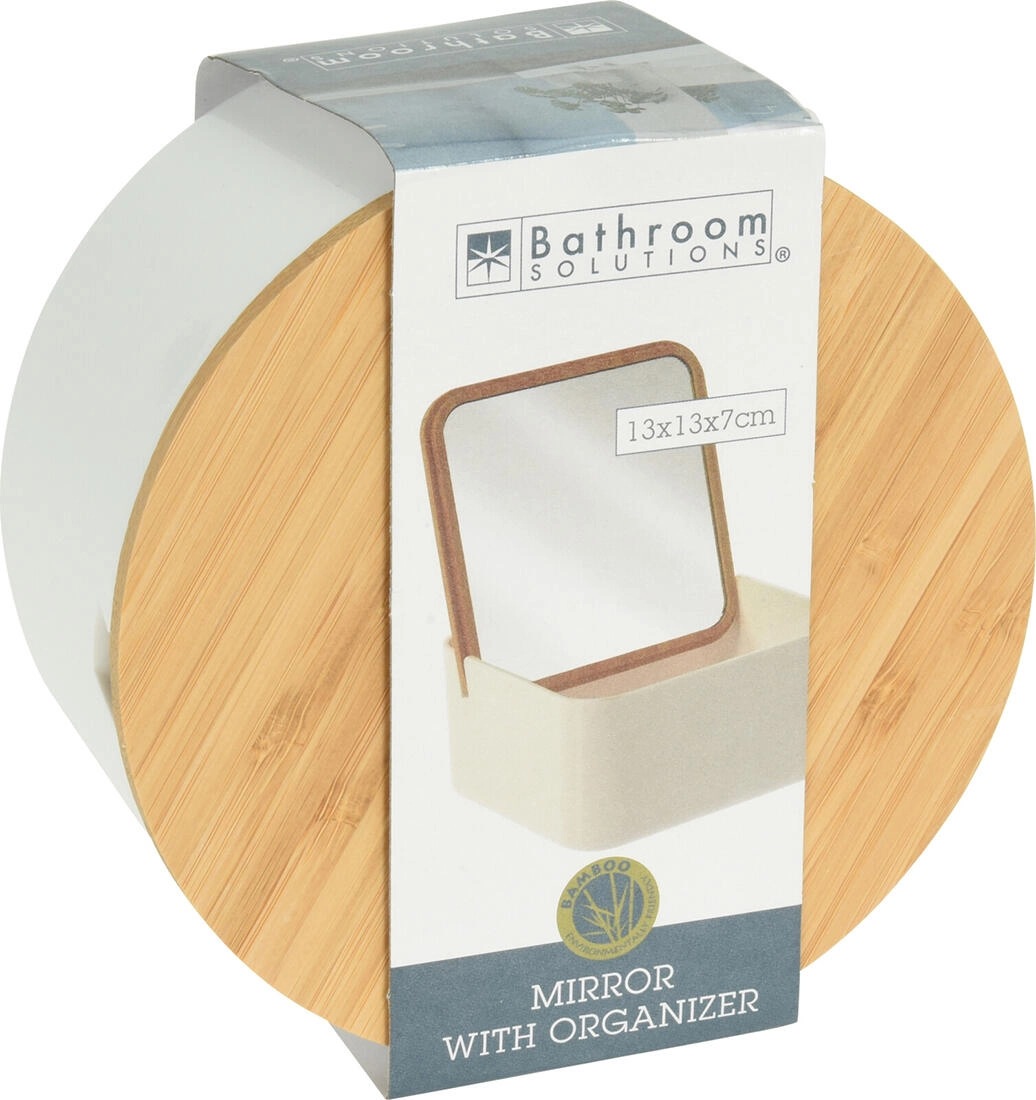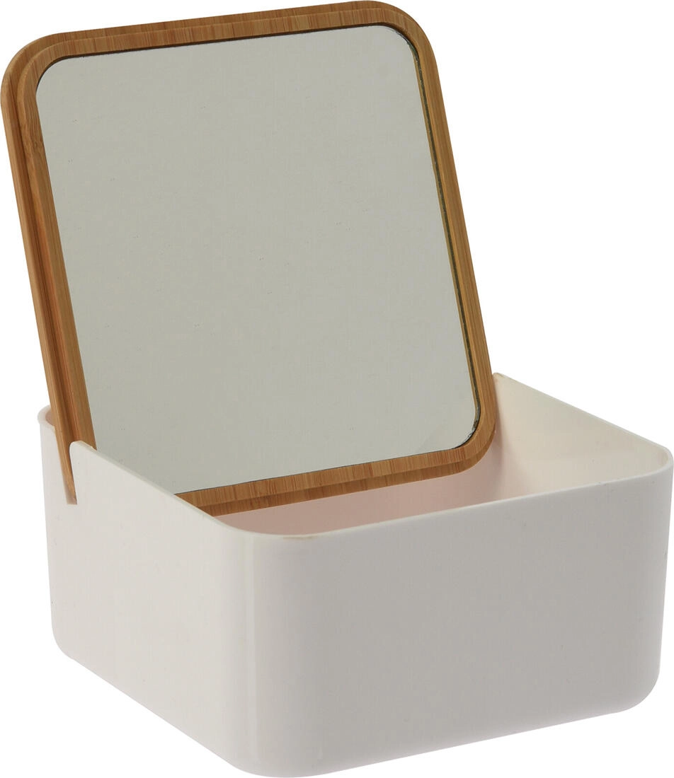 Ta stilski organizer z ogledalcem ohranja vašo vsakodnevno kozmetiko, nakit in drobne dodatke pregledno na enem mestu. Kombinacija odporne plastike in naravnega bambusa deluje sveže in se poda v vsak interier.