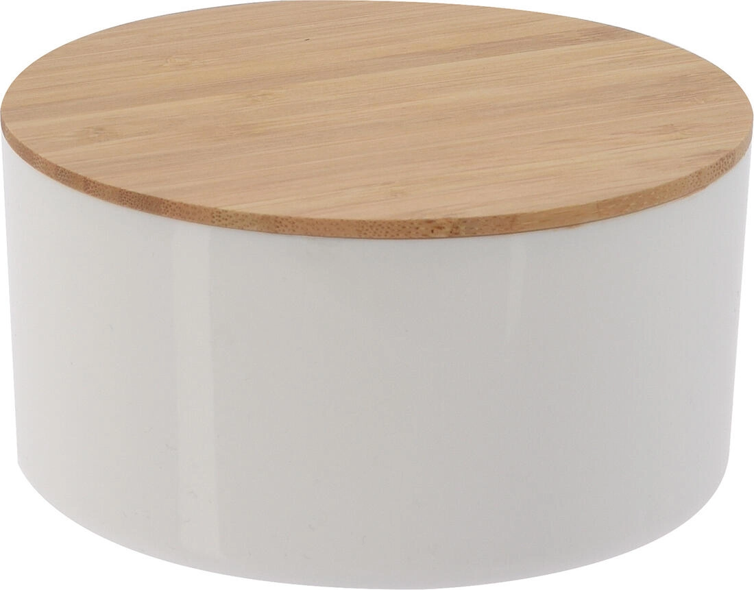 Izbirate lahko med dvema izvedbama: okrogla s praktičnim nagibnim ogledalcem, vgrajenim v pokrovu, ali kvadratna s ploskim bambusovim pokrovom. Obe velikosti sta idealni za vsakodnevno uporabo in se zlahka prilegata umivalni površini, polici ali toaletni mizici.