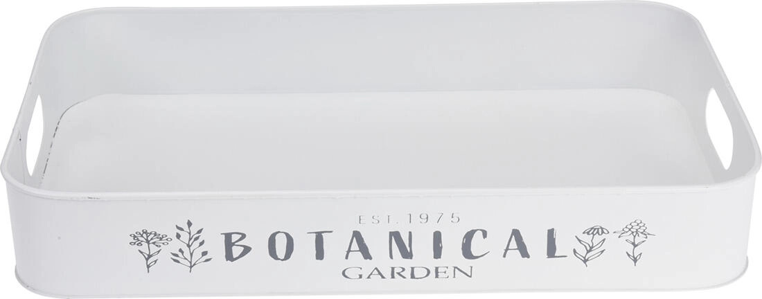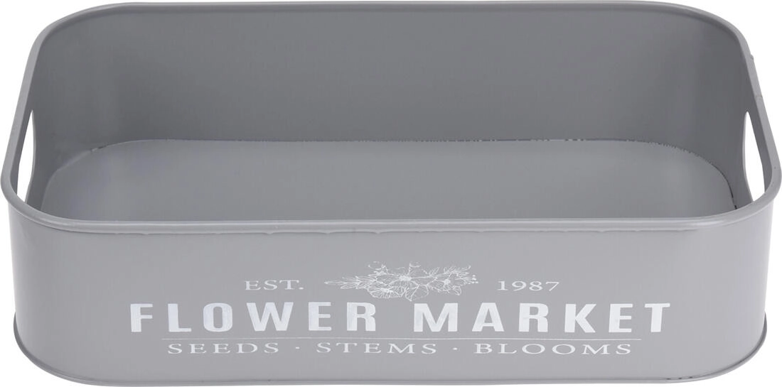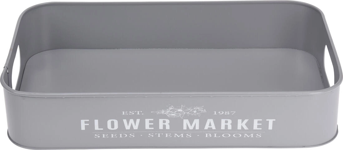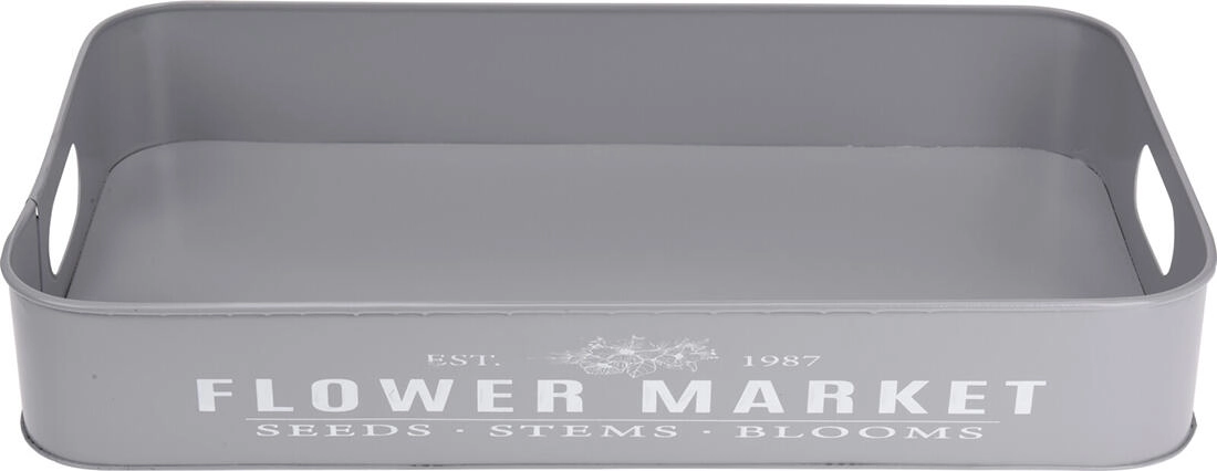 Odkrijte vsestranski set 3 kovinskih pladnjev z diskretnim napisom Botanical Garden / Flower Market, ki bo postal praktičen in dekorativen dodatek vašemu domu. Uporabni za stilsko postrežbo prigrizkov, kot shranjevalni in organizacijski pladnji ali za aranžiranje dekoracij na jedilni mizi, komodi ali terasi.