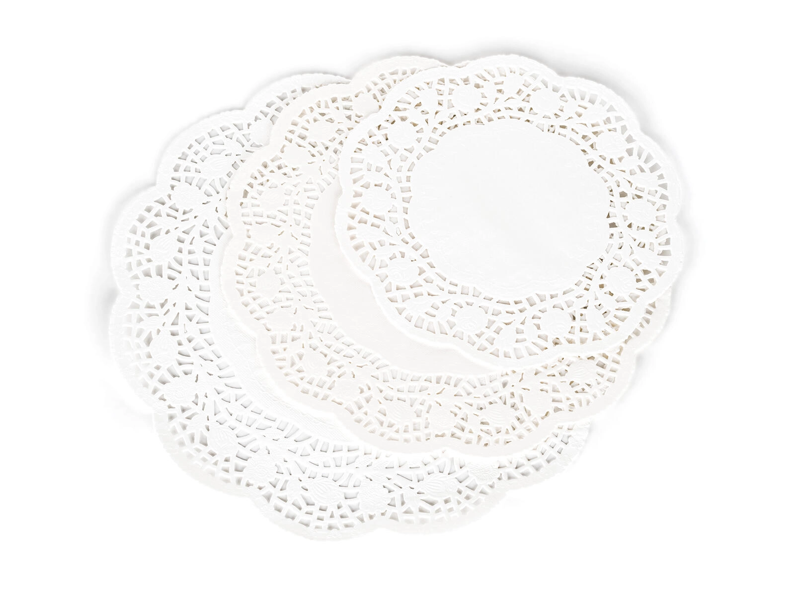 Komplet vsebuje skupaj 18 kosov v treh premerih (21,5 cm, 26,5 cm in 30 cm), zato zlahka izberete pravo velikost za različne tortne modele in pladnje. Gladko sredinsko polje je idealno za stabilno namestitev peciva, medtem ko dekorativne perforacije zagotavljajo privlačen videz in boljši odvod vlage.