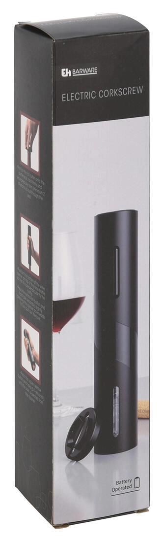 Uživajte v udobnem odpiranju vin s tem električnim odpiračem višine 23 cm, ki zanesljivo izvleče zamašek iz katere koli steklenice brez napora. V paketu je priložen rezalnik folije za hitro in čisto pripravo grla steklenice. Elegantna črna izvedba iz trpežne plastike odlično sede v roko in je primerna za vsak dom ali kot darilo.