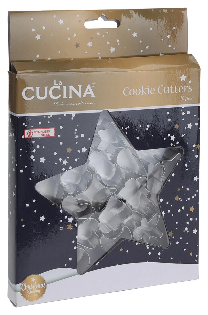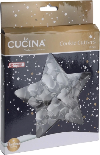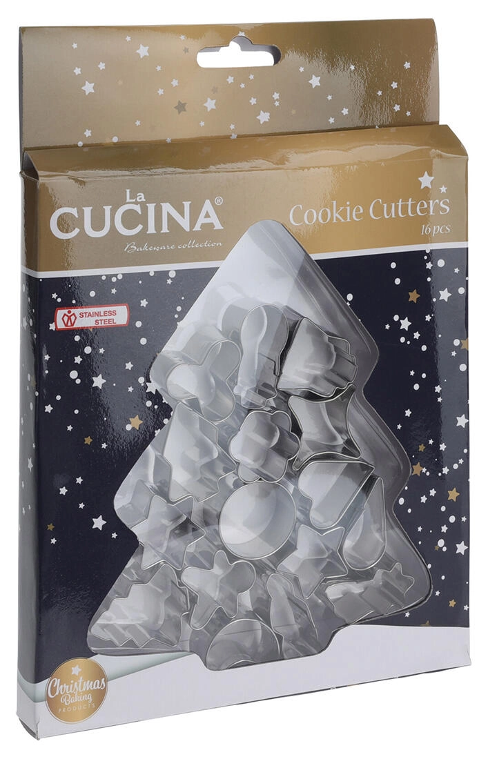 Ta vsestranski komplet 16 nerjavnih modelčkov je idealen za pripravo tradicionalnih in modernih božičnih piškotov. Zahvaljujoč trdni izvedbi iz kakovostnega nerjavnega jekla zlahka izrežete čiste in natančne oblike, ki se med peko ne deformirajo.