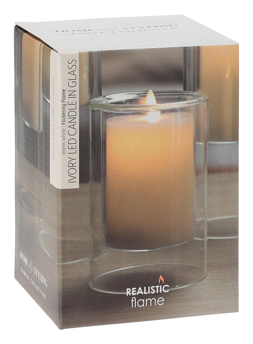 Ta stilska LED sveča z merami 10 × 15 cm je zaprta v čistem steklenem ohišju, ki poudari njen moderen videz. Nežen odtenek Ivory se poda v vsak interier in ga zlahka kombinirate z drugimi dekoracijami.
